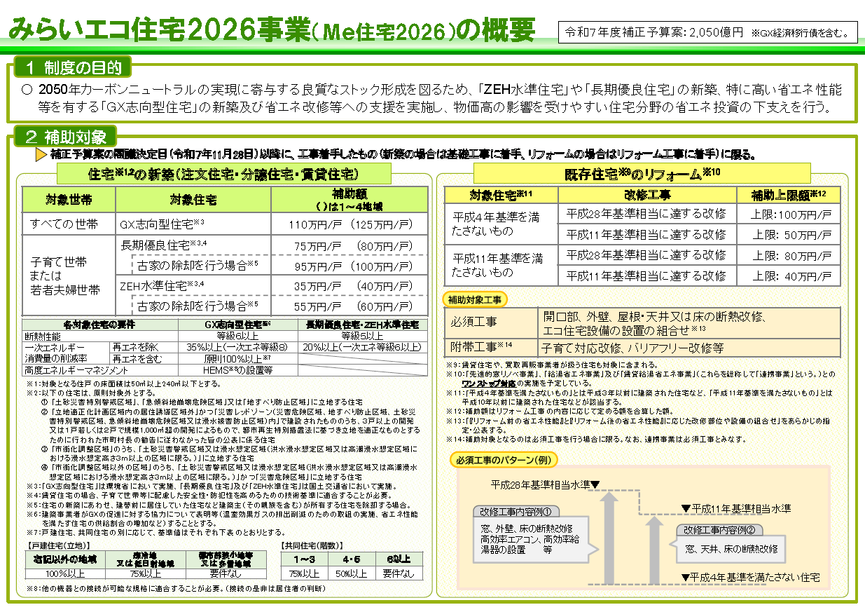 国土交通省HPはこちら→【みらいエコ住宅2026事業について】